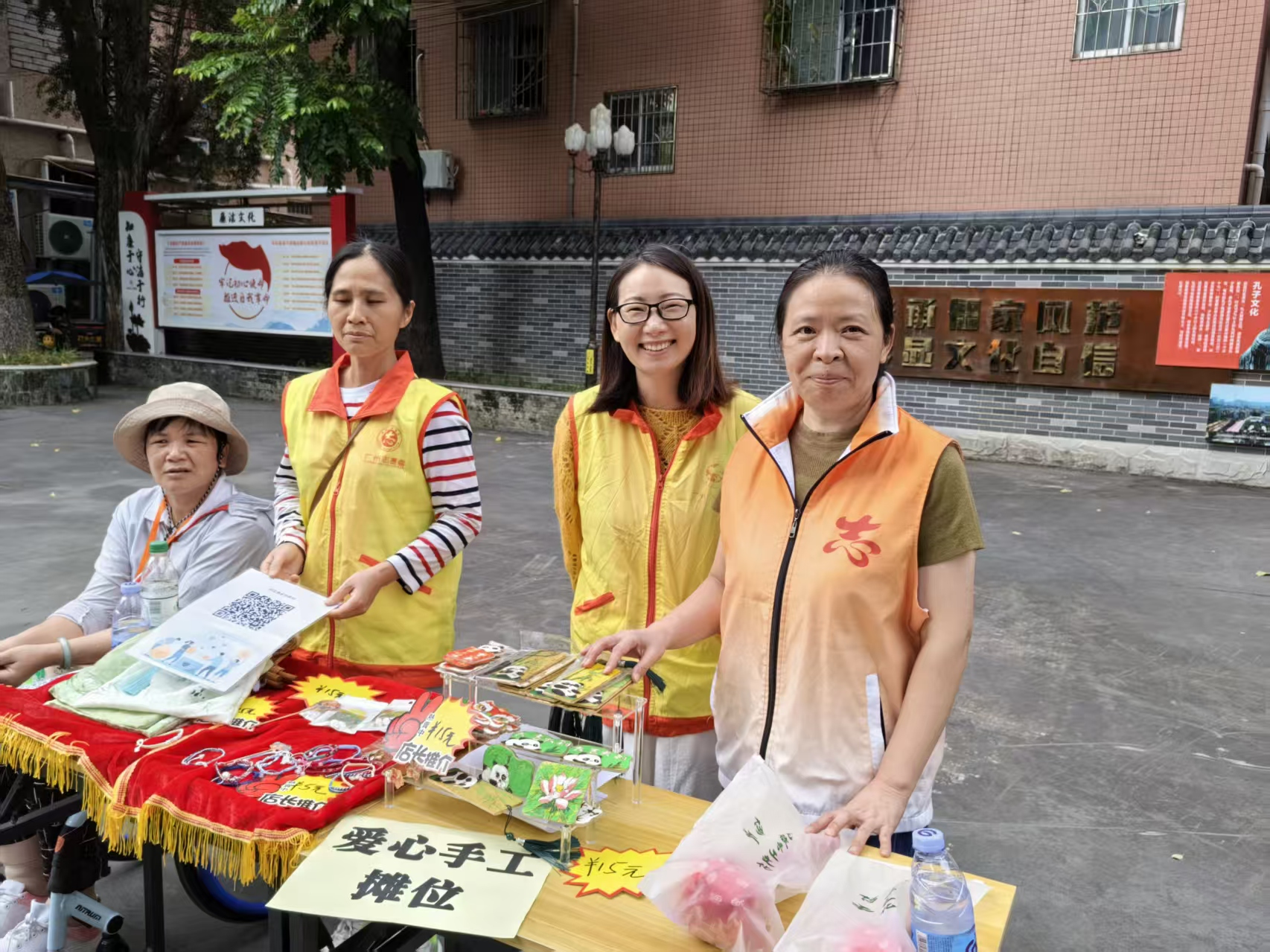 在最后一节活动中,组员在重阳节期间策划了公益义卖摊位,集中展示手工作品。大家化身社区志愿者,积极向居民推介作品,义卖所得款项全部汇入社区慈善基金,用于帮扶困难群体。此外,组员还将部分手工作品赠送给社区独居老人股顺网,传递邻里温情与关怀。